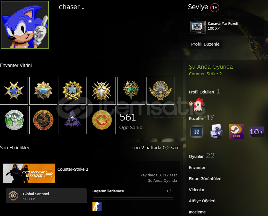💥 Satılık Steam Hesabı – CS2, Dota 2, GTA V, Rust, Rocket League 💥🧩 Genel Bilgiler:Steam Seviyesi: 18Toplam Oyun: 22CS2 Rozet Sayısı: 16Toplam Oyun Süresi: 7.000+ saatEnvanterde: 561 adet öğe 🎮 Oyunlar ve Oynama Süreleri:Dota 2: 3.804 saatCounter-Strike 2: 3.212 saatGrand Theft Auto V: 561 saatRust: 365 saatRocket League: 1061 saatCounter-Strike: Source: 59 saat🏅 CS2 / CS:GO Madalyaları & Rozetleri:20...