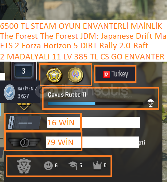2 MADALYALI 11 LV 385 TL CS GO ENVANTERLİ ETS 2 Forza Horizon 5 RAFT DiRT Rally 2.0 6500 TL STEAM OYUN ENVANTERLİ