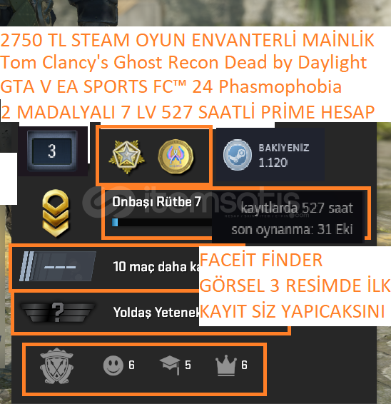 2 MADALYALI 7 LV GTA V FC™ 24 Dead by Daylight 2750 TL STEAM OYUN ENVANTERLİ MAİLLİ MAİNLİK HESAPMADALAYA:2024 HİZMET MADALYASI GLOBAL OFFİCE BADGE JETONWİN:REKABETCİ : WİN YOLDAŞ: WİNPRİME RANK :REKABETCİ:BELİRSİZGÜVEN FAKTÖRÜ:YEŞİLCS GO SEVİYE:7 LV STEAM LV:5STEAM PUAN:1120STEAM BAKİYE:CS GO SAAT:527İLK MAİL:ALDIM KİŞİNİN VERDİĞ&#...