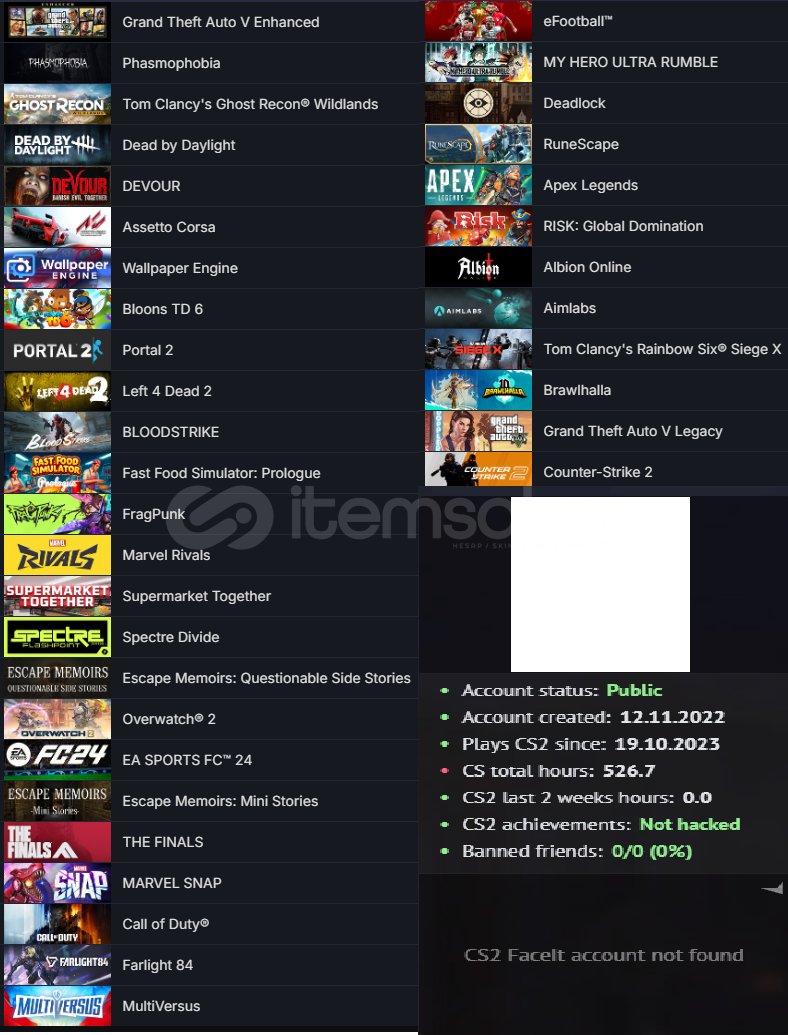 OYUNLAR :CS GO 2 PRİME GTA V Phasmophobia Tom Clancy's Ghost Recon® Wildlands EA SPORTS FC™ 24 Dead by Daylight DEVOUR Assetto Corsa Wallpaper Engine Bloons TD 6 Portal 2 Left 4 Dead 2 BLOODSTRIKE