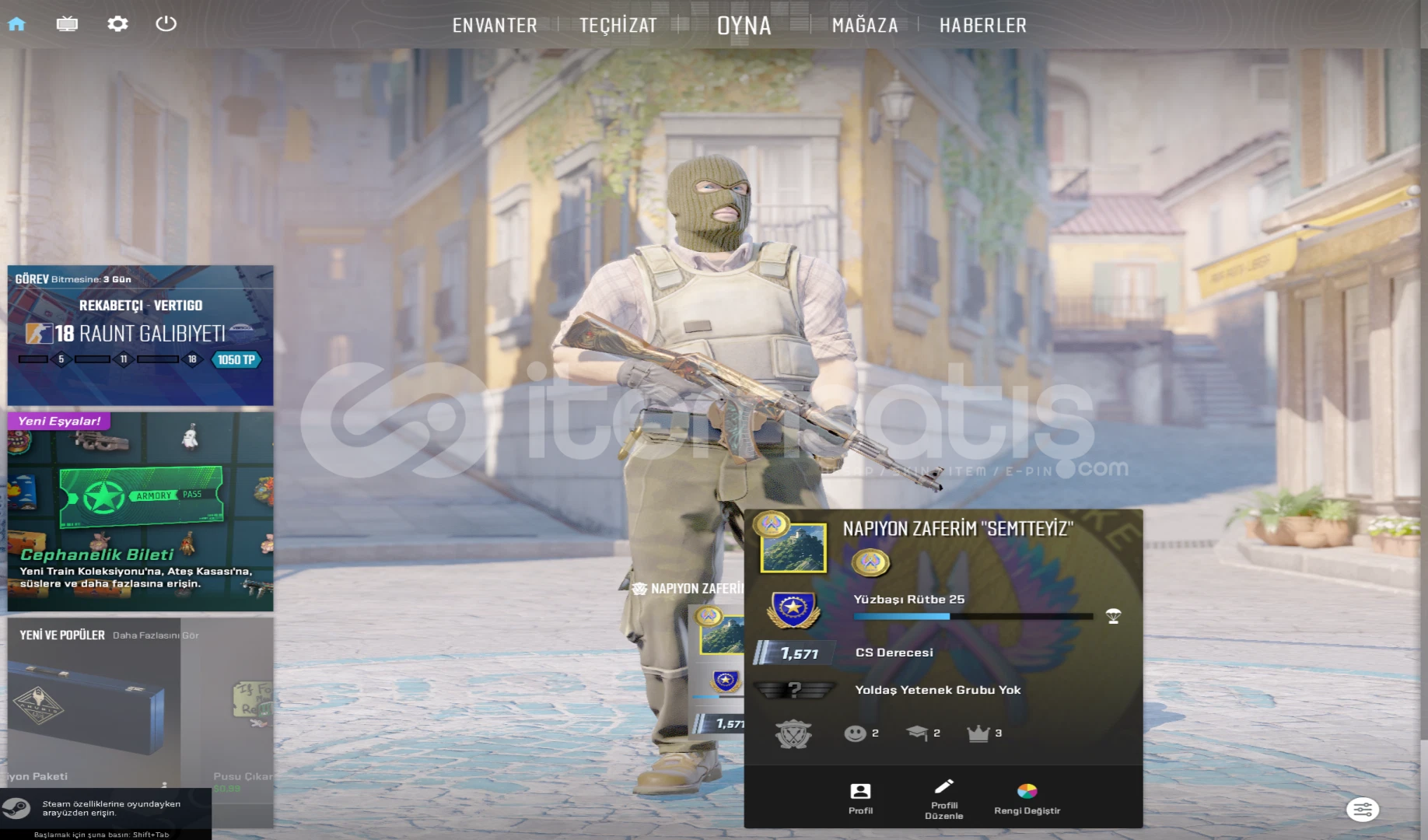 CS ENVANTERİNDE 50 DOLARLIK SKİN VAR SEÇKİN AÇIK 300 SAAT CS OYNANMIŞ GÜNCEL RÜTBESİ TEĞMEN AYRICA COUNTER STRİKE NEXON SÜRÜMÜ OYUNU VARDIR.