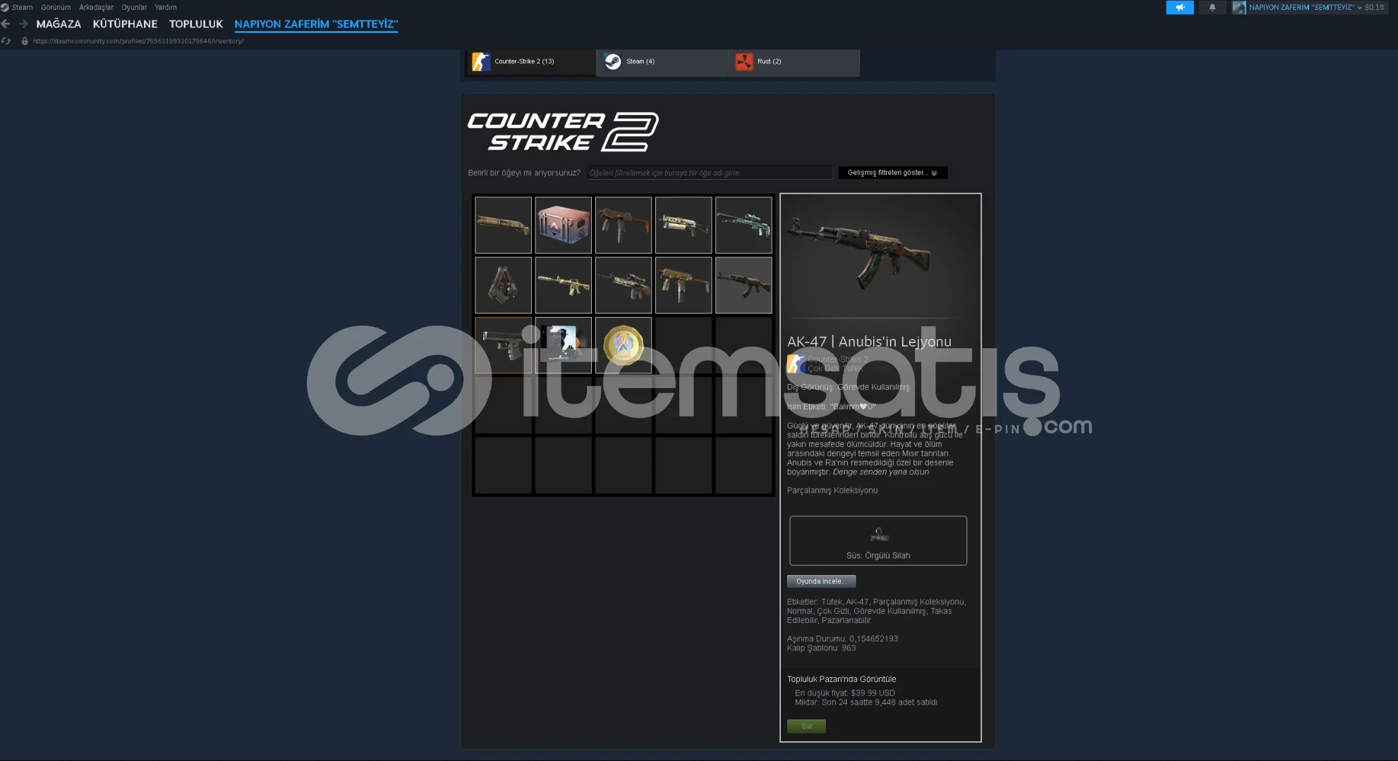 YILLARDIR KULLANMAKTA OLDUĞUM PARA YATIRDIĞIM KİŞİSEL HESABIMI SATIYORUM⭐CS ENVANTERİNDE 50 DOLARLIK SKİN VAR SEÇKİN AÇIK 300 SAAT CS OYNANMIŞ GÜNCEL RÜTBESİ TEĞMEN AYRICA COUNTER STRİKE NEXON SÜRÜMÜ OYUNU VARDIR.⭐3 TANE İLAN FOTOĞRAFINDA GÖRÜLDÜĞÜ GİBİ 200 DOLARLIK OYUN BULUNUYOR⭐GTA 5 İN TÜM VERSİYONLARI AYRICA RUST ...