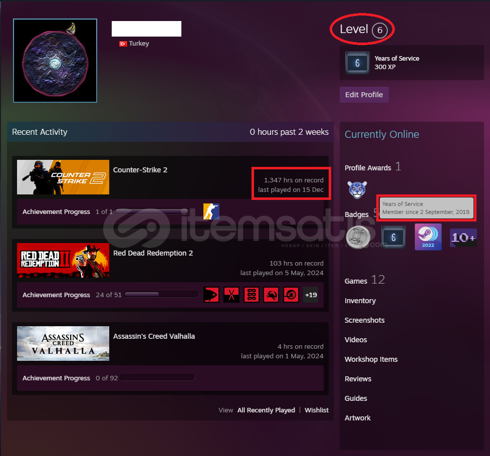 5K OYUNLU 300 TL ENVANTER 7 MADALYA / 1347 SAAT / FACEİT🎯 STOĞUMUZ ANLIK GÜNCELDİR! Satın aldığınızda 5 dakika içinde teslim garantisi 🚀⚡⚠️ Steam erişim sorunları alıcı sorumluluğundadır.👇 Tüm ilanlarımızı görmek için mağazamı ziyaret edebilirsiniz!✅ Tüm CS2 hesaplarımız geri al...