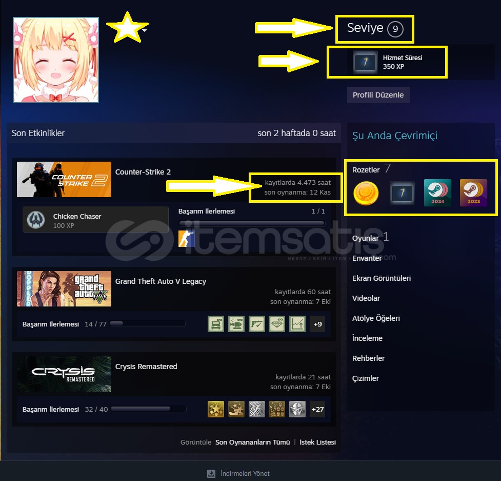 + Steam Seviyesi : 9