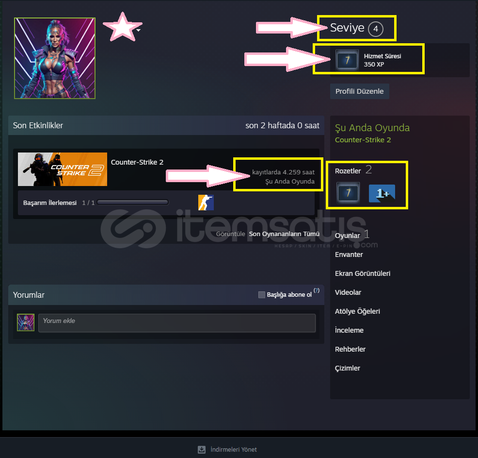 + Otomatik Teslimat Bekleme Süresi Yaşamadan Online Olmamızı Beklemeden+ Ürününüzü Satın Aldığınız An itibari-ile Bilgiler Sizlere Otomatik Gönderilecektir.-----Hesap Bilgileri-----+ Prime & Seçkin+ 4,300 Saat CS:GO Oynama Süresi+ 7 Yıllık Hesap+ Güven Faktörü: Yeşil+ CS:GO Seviyesi : 23+ Steam Seviyesi : 4-----Madalya Bilgileri-----1 : Sadakat Rozeti2 : Elmas Kırık Di&#...