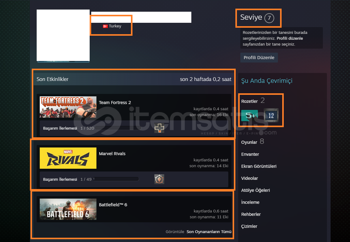 HESAP STEAM GİRİŞ BİLGİLERİ VE MAİLİYLE TESLİM EDİLİCEKTİR
