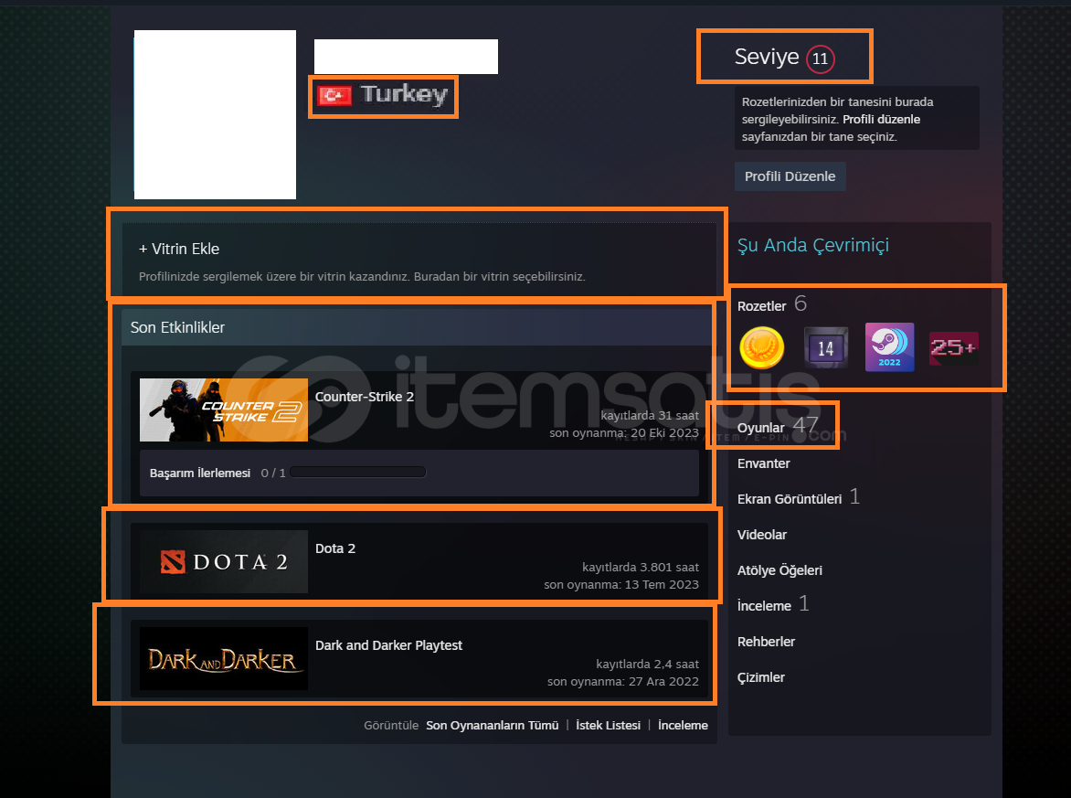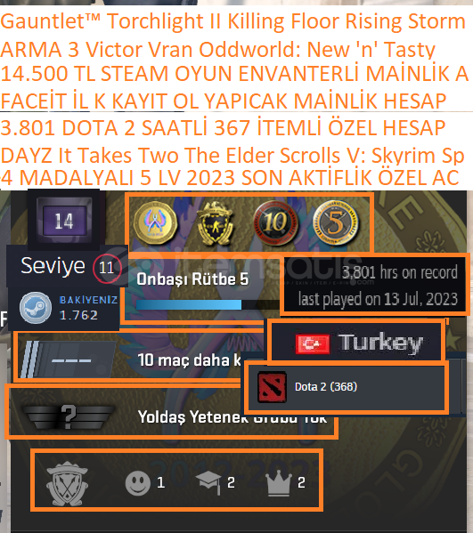4 MADALYALI 5 LV DAYZ ARMA 3 It Takes Two 14.500 TL STEAM OYUN ENVANTERLİ 3.801 DOTA 2 SAATLİ MAİNLİK HESAP STEAM LV 11