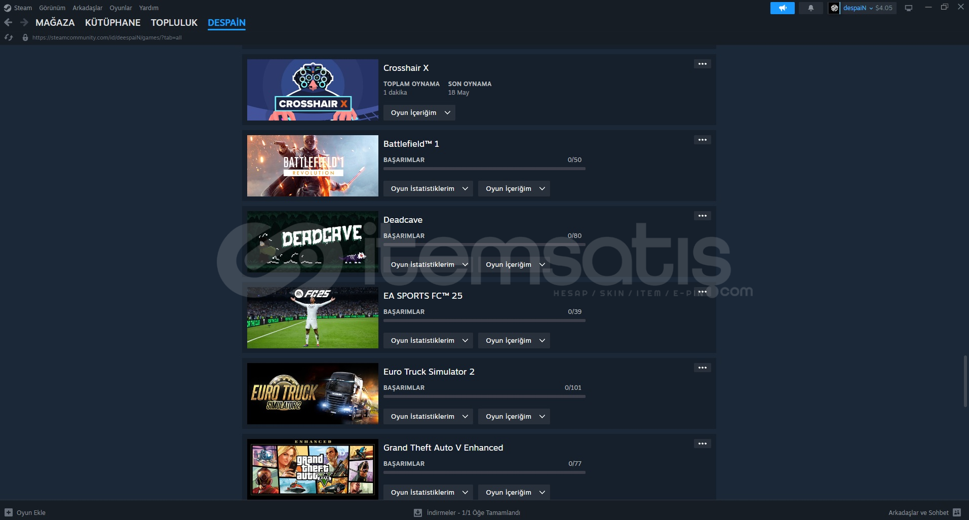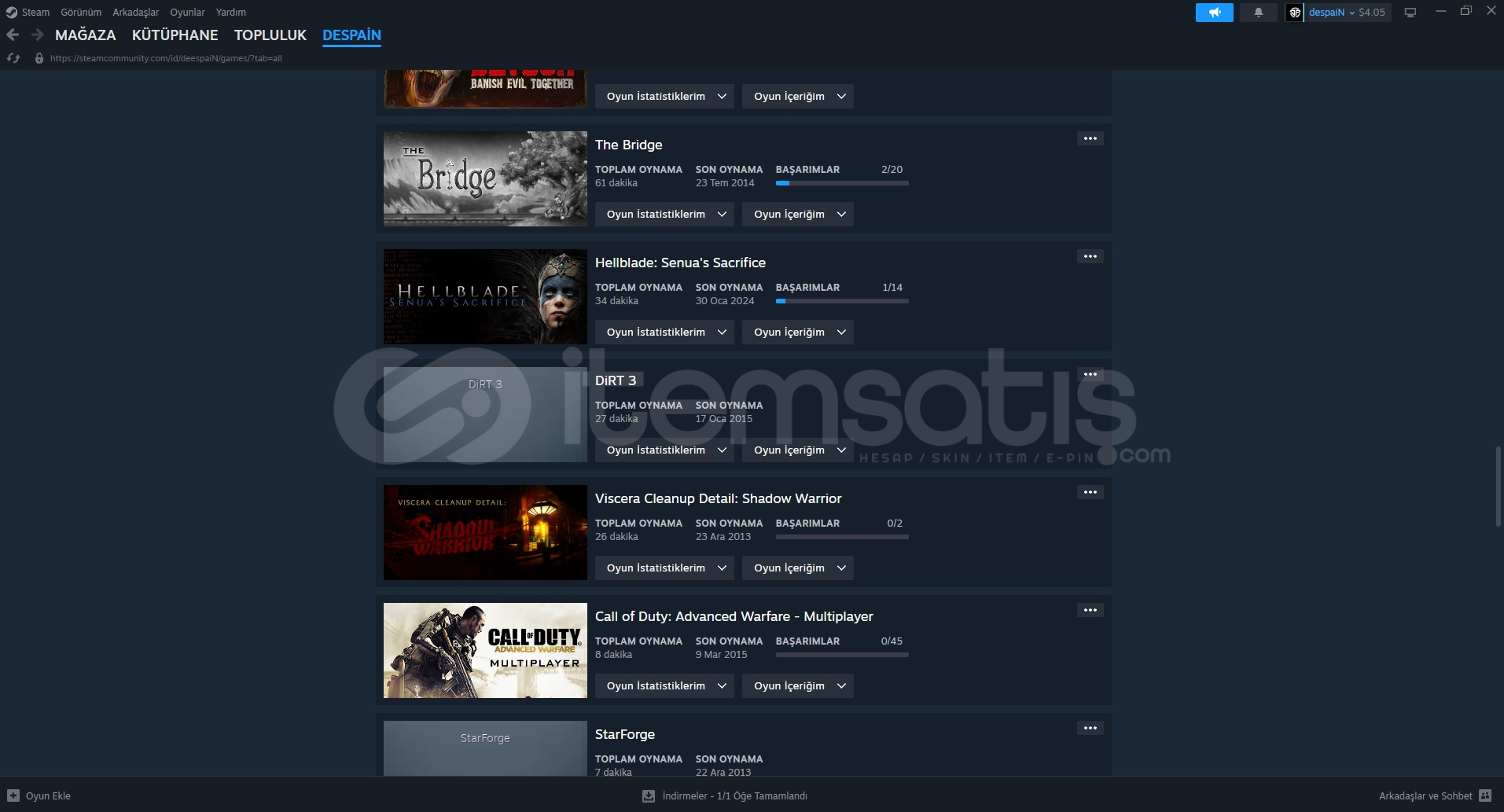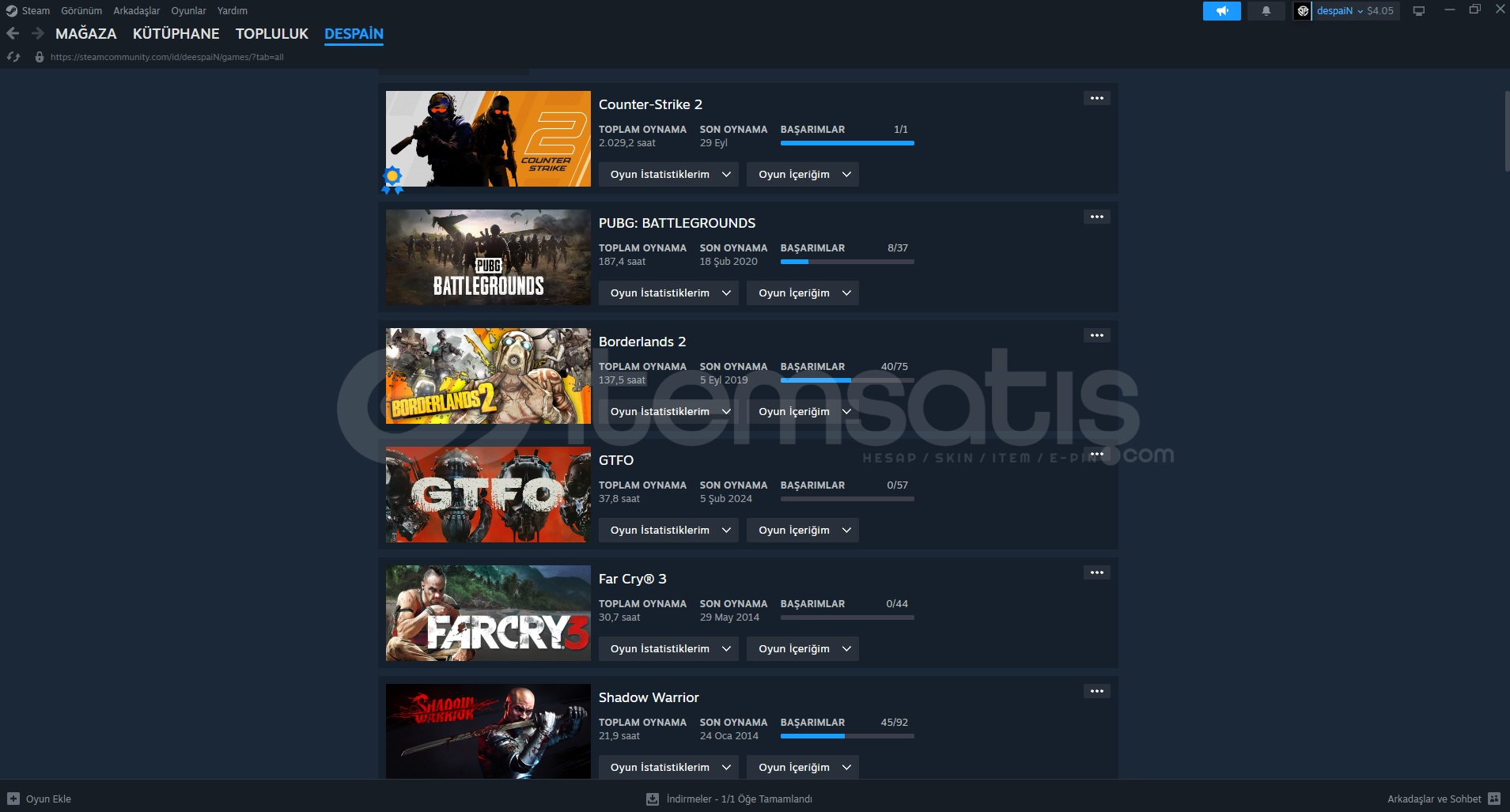 FACEİT VAR KİMLİK DOĞRULAMASINI ALAN KİŞİ KENDİ ÜZERİNE YAPICAK45 ADET OYUN VARDIR BUNLARDAN ÜCRETLİ ALINANLAR ALTTA MEVCUTRustCounter-Strike 2 - 12 MADALYASI VARDIRPAYDAY 2Battlefield™ 1Left 4 Dead 2Euro Truck Simulator 2EA SPORTS FC™ 25Grand Theft Auto V LegacyGrand Theft Auto V EnhancedCall of Duty: Advanced Warfare - Multiplayer