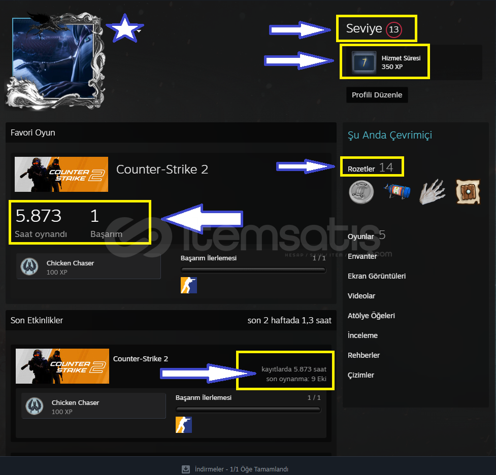 + Otomatik Teslimat Bekleme Süresi Yaşamadan Online Olmamızı Beklemeden+ Ürününüzü Satın Aldığınız An itibari-ile Bilgiler Sizlere Otomatik Gönderilecektir.-----Hesap Bilgileri-----+ Prime & Seçkin+ 5,900 Saat CS:GO Oynama Süresi+ 7 Yıllık Hesap+ Güven Faktörü: Yeşil+ CS:GO Seviyesi : 32+ Steam Seviyesi : 13+ 65 + 65 + 66 = 200 Adet CS:GO Oyun içi ÖvgüLü.----...