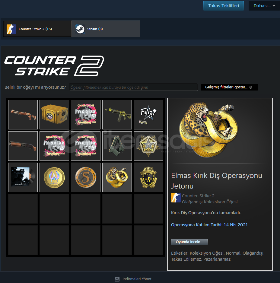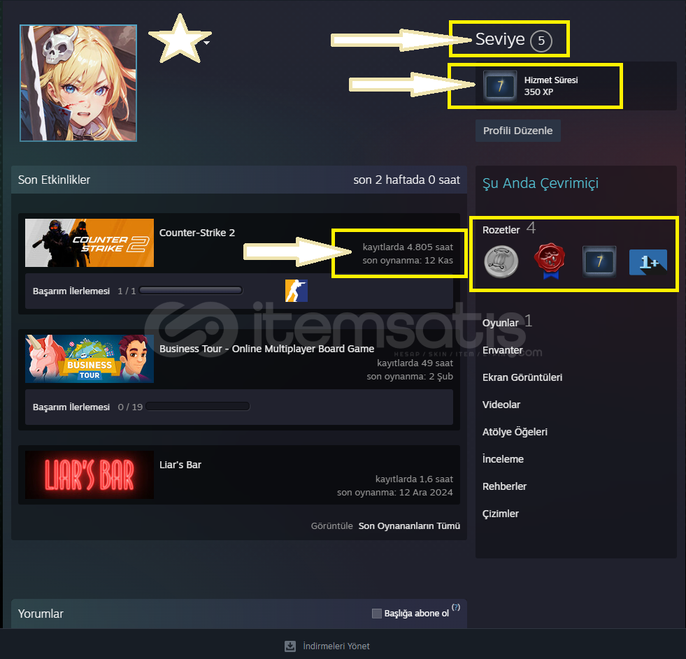 + Otomatik Teslimat Bekleme Süresi Yaşamadan Online Olmamızı Beklemeden+ Ürününüzü Satın Aldığınız An itibari-ile Bilgiler Sizlere Otomatik Gönderilecektir.-----Hesap Bilgileri-----+ Prime & Seçkin+ 4,800 Saat CS:GO Oynama Süresi+ 7 Yıllık Hesap+ Güven Faktörü: Yeşil+ CS:GO Seviyesi : 15+ Steam Seviyesi : 5-----Madalya Bilgileri-----1 : Sadakat Rozeti2 : Elmas Kırık Di&#...