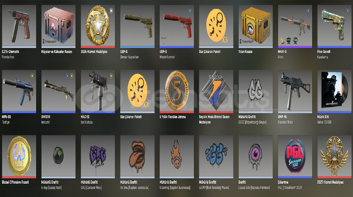 5 MADALYALI 2 LV 275 TL CS GO ENVANTERLİ 2150 T