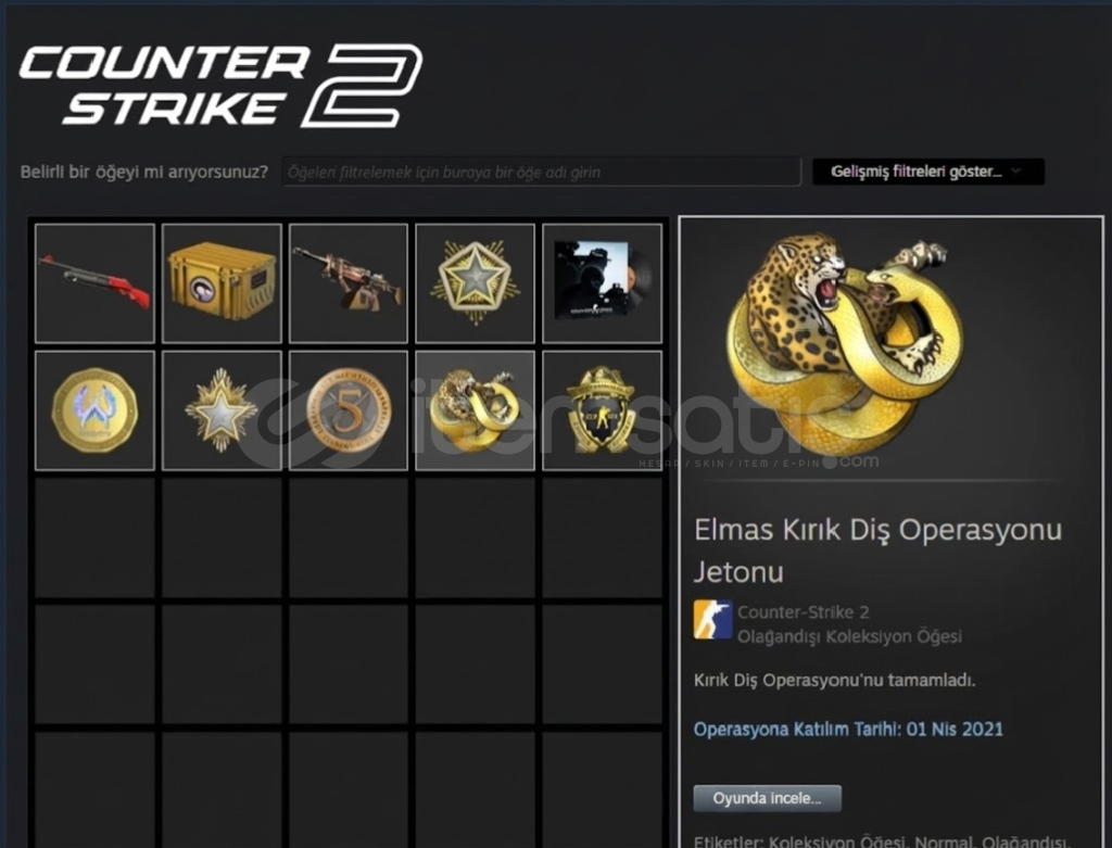 🧩 Genel BilgilerSteam Seviyesi: 108 Yıllık Hesap🏅 CS2 / CS:GO Madalya & JetonlarıSeçkin Rank (21k) (Rozeti bu ay sonu gelecek)2023 Hizmet Madalyası2024 Hizmet Madalyasi5 Yıllık Tecrübe JetonuSadakat RozetiGlobal Offensive RozetiElmas Kırık Diş Operasyonu Jetonu(Toplam: 6 adet madalya/rozet görselde mevcut.) (7.nci bu ay sonu gelecek)- İlk maili ile teslim edilir sorun yaşamazsını...