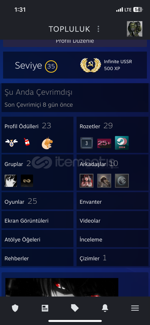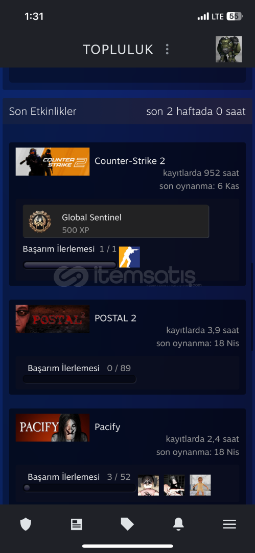 6 madalya + 35 lvl steam profili