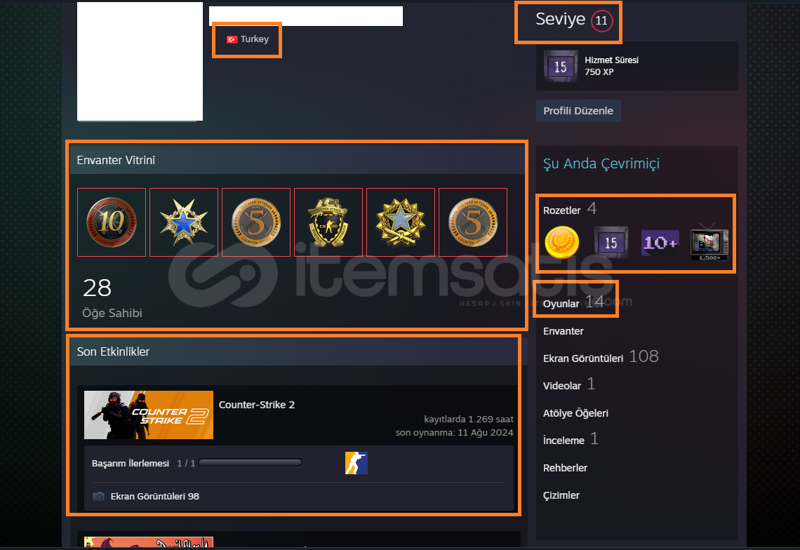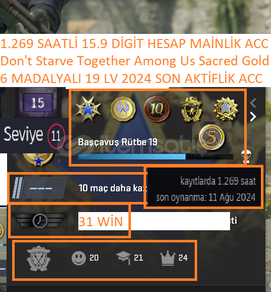 6 MADALYALI 19 LV 2024 SON AKTİFLİK 15.9 DİGİT 1.269 SAATLİ MAİLLİ MAİNLİK HESAP STEAM LV 11MADALAYA:2015 2017 HİZMET MADALYASI 10 YIL JETON 5 YIL JETON GLOBAL OFFİCE BADGE JETON SADAKAT ROZETİWİN:REKABETCİ : WİN YOLDAŞ: WİNPRİME RANK :REKABETCİ:BELİRSİZGÜVEN FAKTÖRÜ:YEŞİLCS GO SEVİYE:19 LV 2025 HİZMET MADALYASI ALICAKSTEAM LV:11 LV ÇİZİM EK...