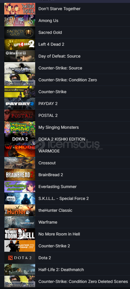 OYUNLAR :CS GO 2 PRİME Don't Starve Together Among Us Sacred Gold  Left 4 Dead 2 Day of Defeat: Source Counter-Strike: Source Counter-Strike: Condition Zero Counter-Strike PAYDAY 2 POSTAL 2 My Singing Monsters DOKA 2 KISHKI EDITION WARMODE Crossout