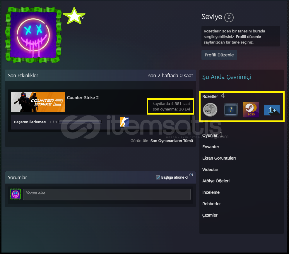 + Otomatik Teslimat Bekleme Süresi Yaşamadan Online Olmamızı Beklemeden+ Ürününüzü Satın Aldığınız An itibari-ile Bilgiler Sizlere Otomatik Gönderilecektir.-----Hesap Bilgileri-----+ Prime & Seçkin+ 200 + 200 + 200 = 600 Adet CS:GO Oyun içi ÖvgüLü.+ 4,400 Saat CS:GO Oynama Süresi+ 7 Yıllık Hesap+ Güven Faktörü: Yeşil+ CS:GO Seviyesi : 11+ Steam Seviyesi : 6--...