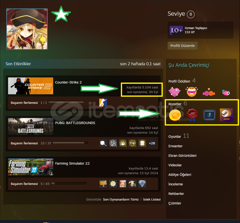 + Steam Seviyesi : 8