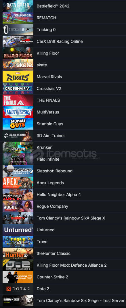OYUNLAR :CS GO 2 PRİME Battlefield™ 2042 REMATCH Tricking 0 CarX Drift Racing Online Killing Floor skate. Marvel Rivals FREE Crosshair V2 THE FINALS MultiVersus Stumble Guys 3D Aim Trainer Krunker Halo Infinite
