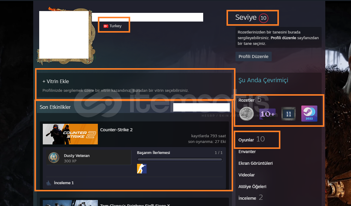 STEAM LV:10 LV ÇİZİM EKLENEBİLİR HAREREKETLİ ARKA PLAN ÇERÇEVE VE AVATAR MEVCUT