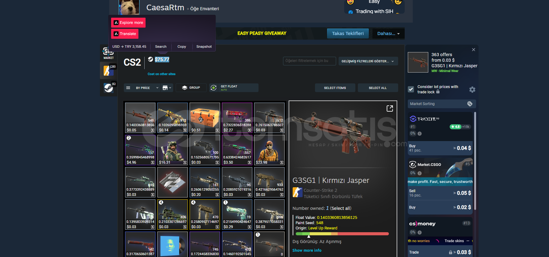 76 DOLAR ENVANTERLİ CS2 PRİME HESAP