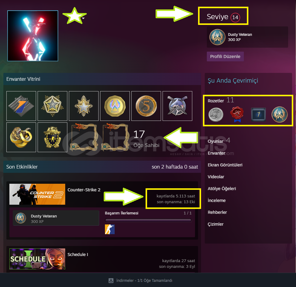 Steam Pazar kullanımı ve Arkadaş ekleme özellikleri aktif kullanılabilir ve herhangi bir kısıtlama yoktur