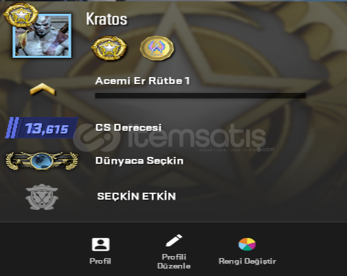 2 Adet rozet bulunmakta ve hesapta sadece bir kaç adet skin bulunuyor