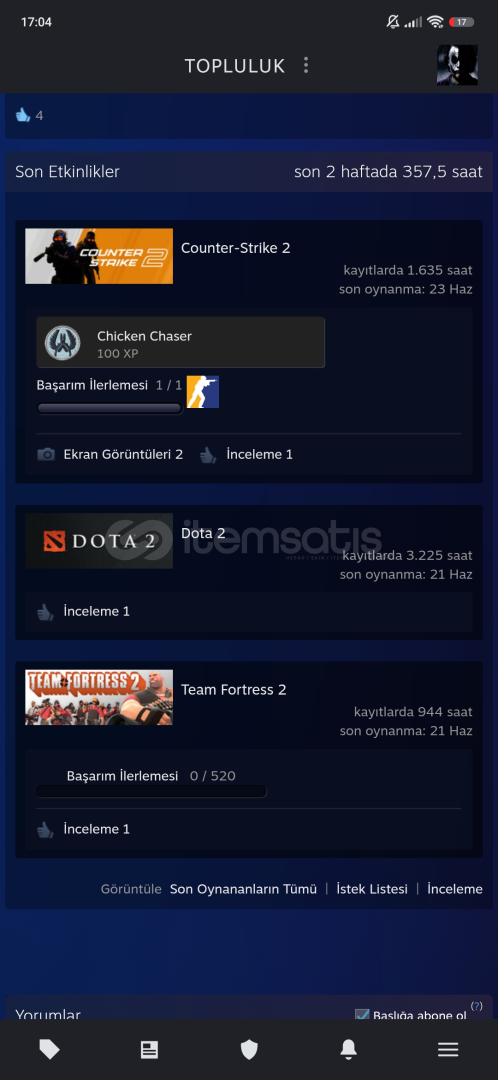 Bu hesabı 2024 de satın almıştım 1 yıl kullandım içindeki envanter bana ait yaklaşık 42 dolar 13 yılık hesap sadece uzun zaman ürün satın alınmadığı için 5 dolar yuklenirse Pazar aktif olur 4 madalya 33 Lv 5 ci 40 olunca alırsınız kendim 1 yıl oynadım bir sıktı olmaz aldığım maili değiştirmedim hesabı tüm bilgileri ile vereceğim sıkıntı olmaz paraya ihtiyacım var bu yüzden satıyorum hesabı geri alma gibi bir sıkıntı olmaz