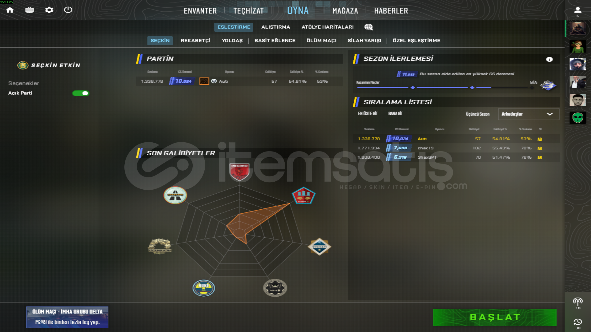 CS 2 SECKIN AKTİF HESAP SEZON SONU 3 MADALYALI