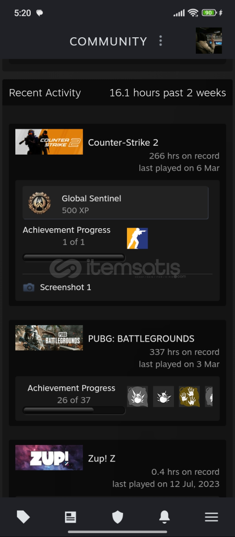 Dostlar hesabı zamanında cs 1.6 oynamak için açmıştım sonrasında pc bozulunca hesabı kaybetmiştim geçen senelerde hesabımı buldum.Şuanda acil paraya ihtyacım olduğu için satıyorum:)HESAPDA CS2 ENVANTERİMDE YAKLAŞIK 20-30 DOLAR EDİCEK EŞYALAR BULUNUYOR. ------------------------------------PUBG ENVANTERİM DOLU YÜKSELTİLEBİLİR SİLAH GÜZEL KOMBİ...