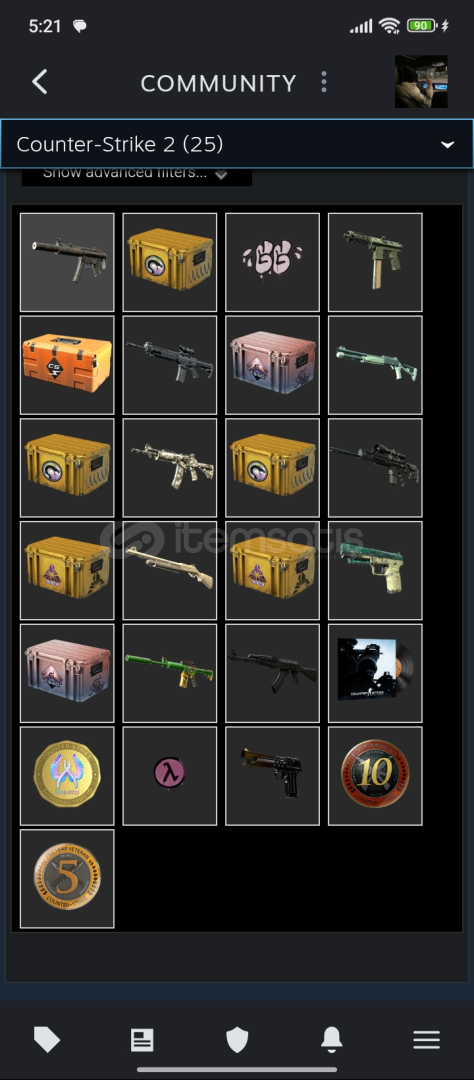 HESAPDA CS2 ENVANTERİMDE YAKLAŞIK 20-30 DOLAR EDİCEK EŞYALAR BULUNUYOR.