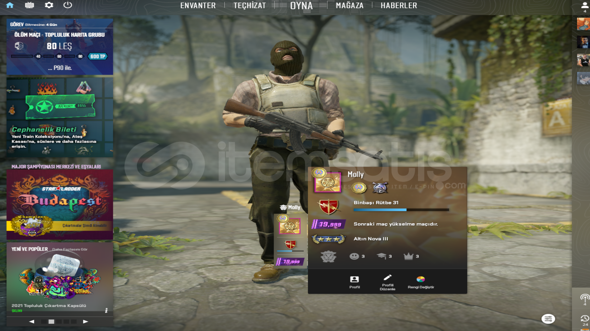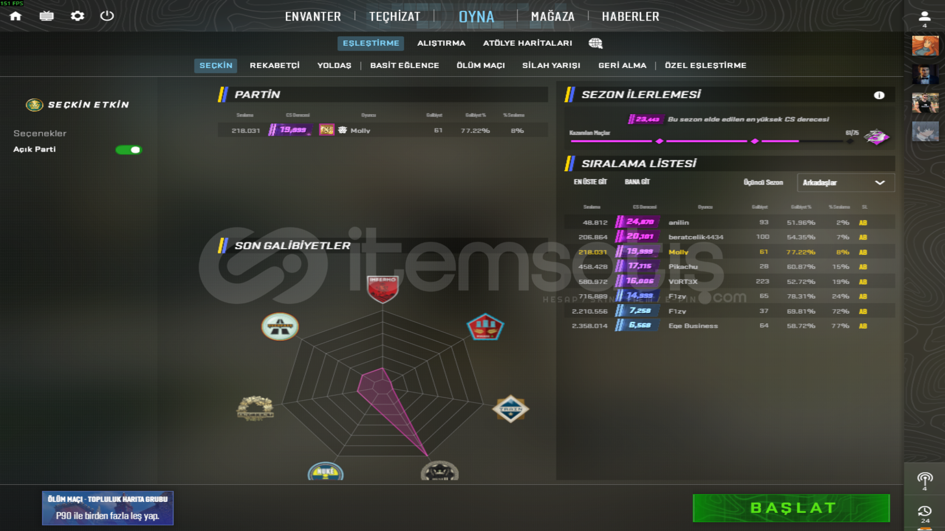 Hesap 20k elo verdiğiniz maile aktarılacaktır seçkin olup 2 adet madalyası mevcuttur