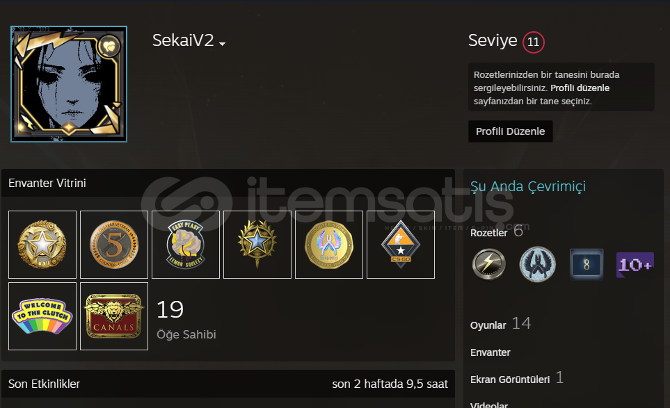 HESAP İÇERİSİNDE 10 MADALYA MEVCUTTURSTEAM PROFIL LEVELI 11 DİRSORMAK İSTEDİĞİNİZ SORU OLURSA ULAŞABİLİRSİNİZhesabın 2. sahıbıyımhesabı aldıgınızda sorumluluk sıze aıttır