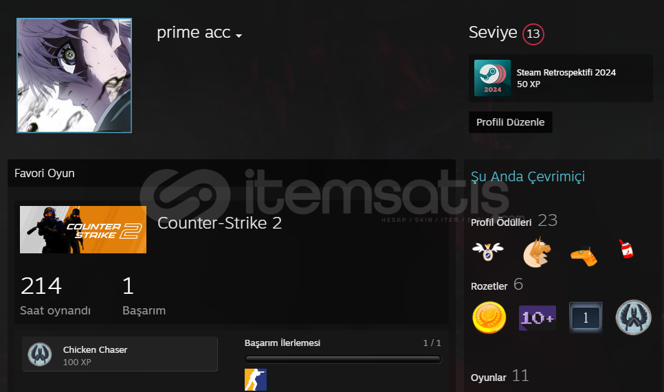 [CS2 PRIME] 13 Seviye Steam Hesabı + Oyunlu