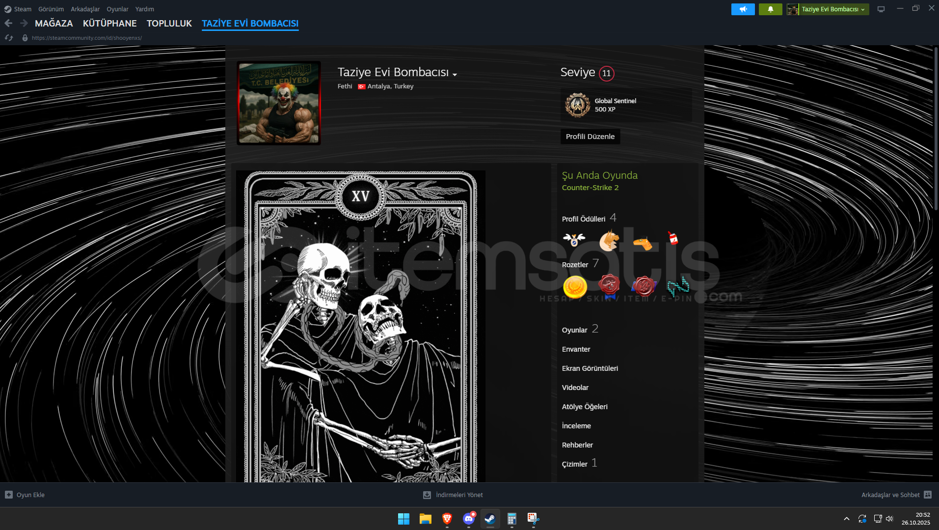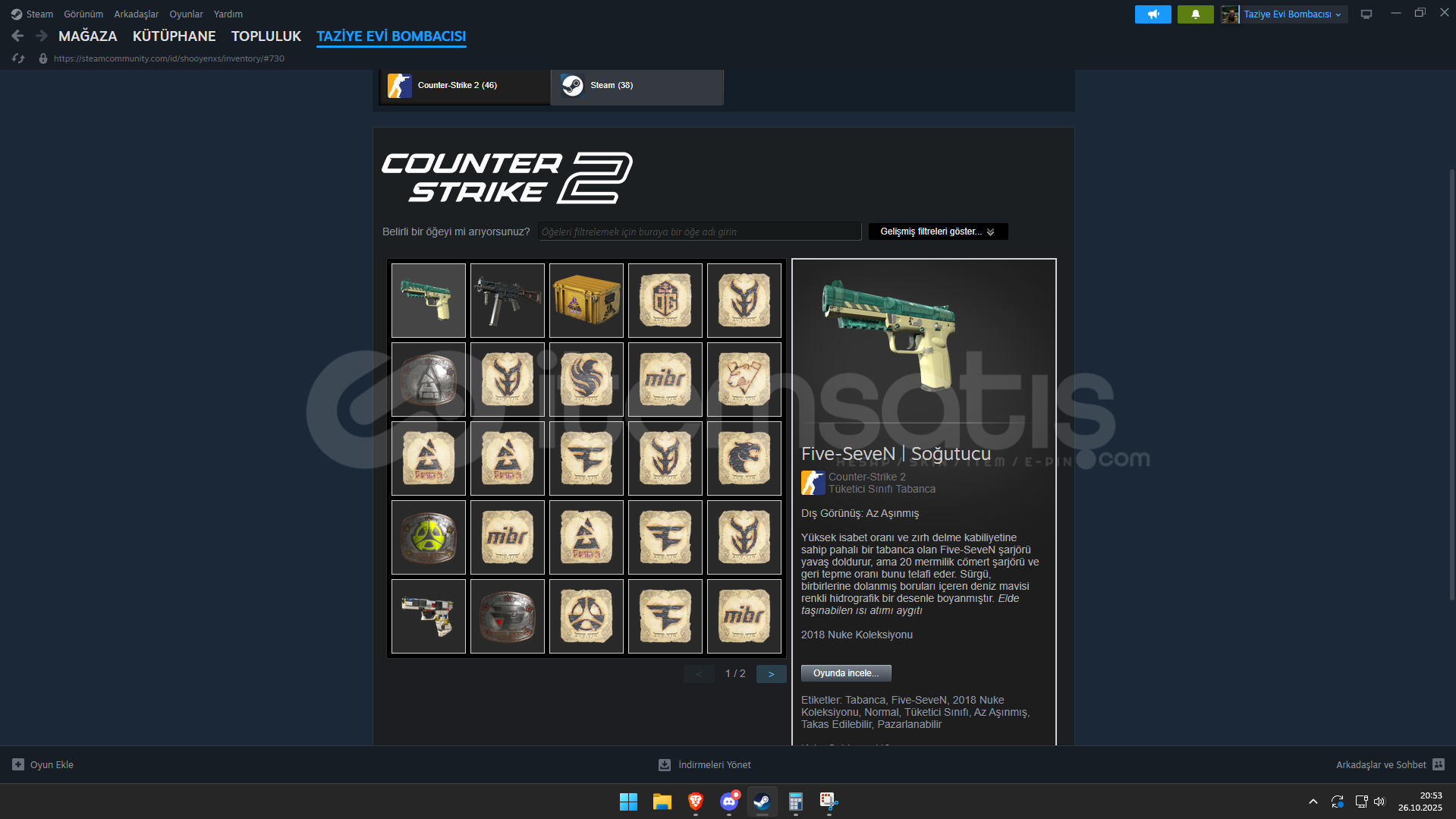 Hesabın Bütün Bilgileri Size Teslim EdilecektirHesapta Hiçbir Problem YokturHesabın İlk Mail Adresi Teslim Edilecektir4500 Steam Puanı VardırSteam Leveli 11 DirHesapta Armory Pass VardırHesabın Konumu TürkiyedirProfilinde 264 Sayfa Yorum vardırCs2 Profilinde Her birinden 339 tane olmak üzere toplam 1017 Övgü vardırProfil : https://steamcommunity.com/id/shooyenxs/