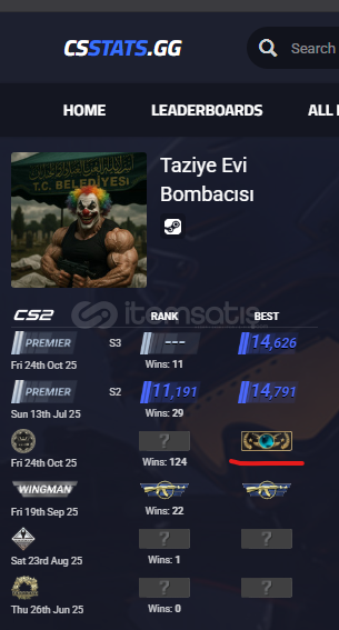 Cs2 Profilinde Her birinden 339 tane olmak üzere toplam 1017 Övgü vardır