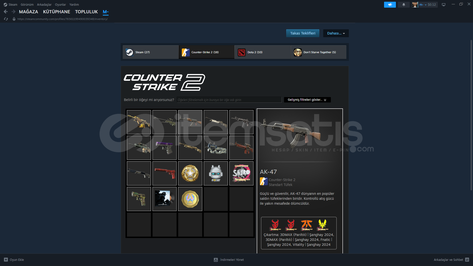 STEAM HESAP DEĞERİ AŞAĞIDAKİ LİNKTE VARDIR 400 DOLARA YAKIN İÇERİSİNDEKİ OYUNLARhttps://steamdb.info/calculator/76561199490039348/?cc=trCSGO2 PREMİUMEURO TRUCK SİMULATOR 2V RİSİNG TÜM DLCLER7 DAYS TO DİEASETTA CORSA TÜM DLC LER İLE BİRLİKTEBATTLEBİT REMASTEREDBLACK DESERTCOUNTER STRİKEDEAD İSLAND DEFİNİTİVE EDİTİONDON'T STARVE TOGETHERDYİNG L...