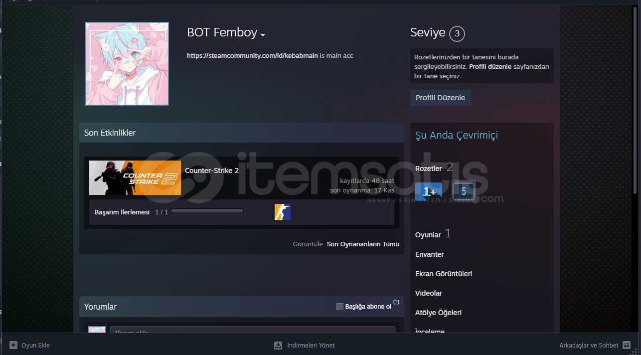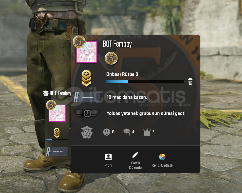 Kredi kartı borçlarımdan dolayı satışa koyduğum 2. kasa farmladığım prime hesabımdır.Bundan daha uygun olan ilk koyduğum ilana ulaşmak için profilimden aktif ilanıma göz atabilirsiniz.Level : 8Hesap tarihi : 12 nisan 2020Madalya : 5 yıllık tecrübe.
