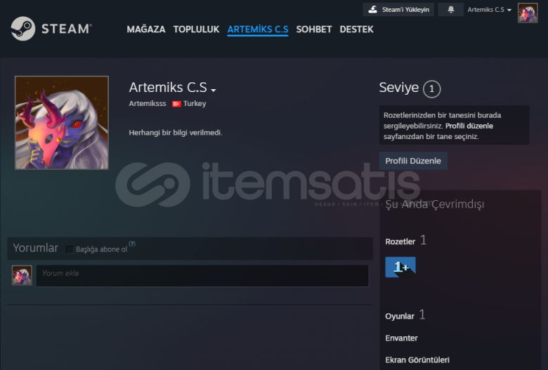 Hesapta daha önce oynanmamıştır steam hesabımda yenidir.
