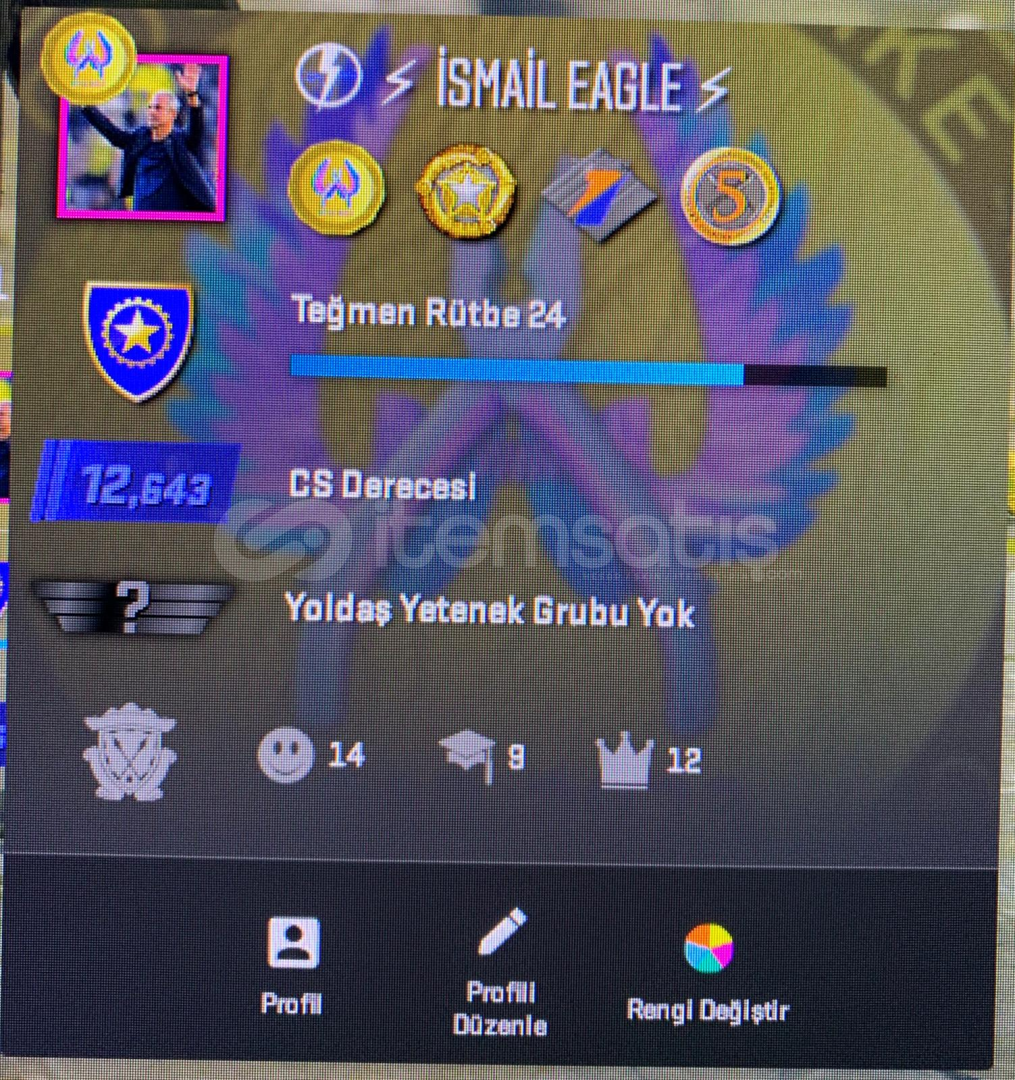 12.643 SEÇKİN PUANI 35 ÖVGÜ TOPLAMDA 250 DOLARLIK SKİNLER +500 SAAT OYNAMA