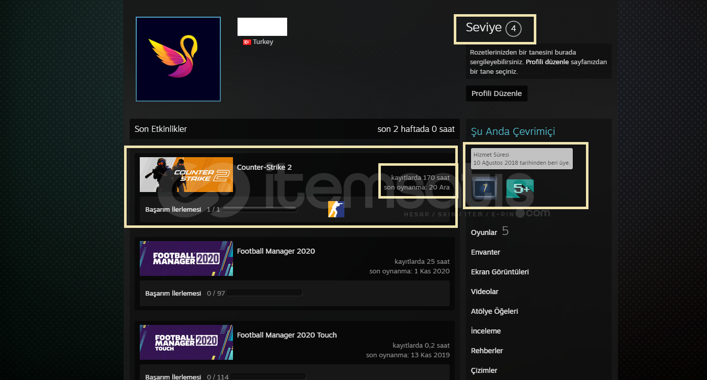 STEAM OLUŞTURMA TARİHİ : 10 Ağustos 2018