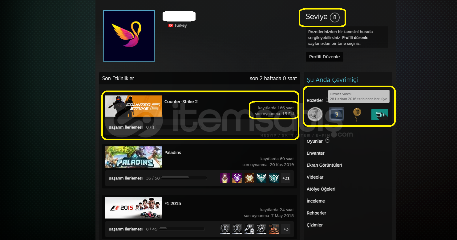 STEAM PROFİL SEVİYESİ : 8 SEVİYE
