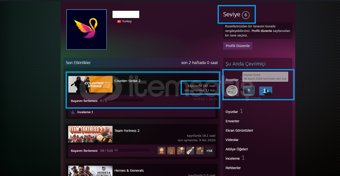 STEAM PROFİL SEVİYESİ : 6 SEVİYE