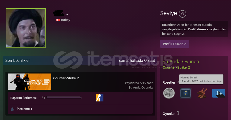 HESABIN TÜM BİLGİLERİ DEĞİŞMEKTEDİR MAİL-ŞİFRE-TELEFON NO*MOBİL GUARD EKLEYEBİLİRSİNİZMADALYALAR : CS GO ROZETİ+ SADAKAT ROZETİ + 5 YIL JETONU+2018 : 4 MADALYALIREKABETÇİ WİN SAYISI : 200 WİNCS:GO LEVELİ : 35 LEVEL(5.ROZETİ KOLAYLIKLA ALABİLİRSİNİZ)PRİME DURUMU : SEÇKİN PRİMEGÜVEN FAKTÖRÜ : YEŞİLVAC BAN -- OW ...