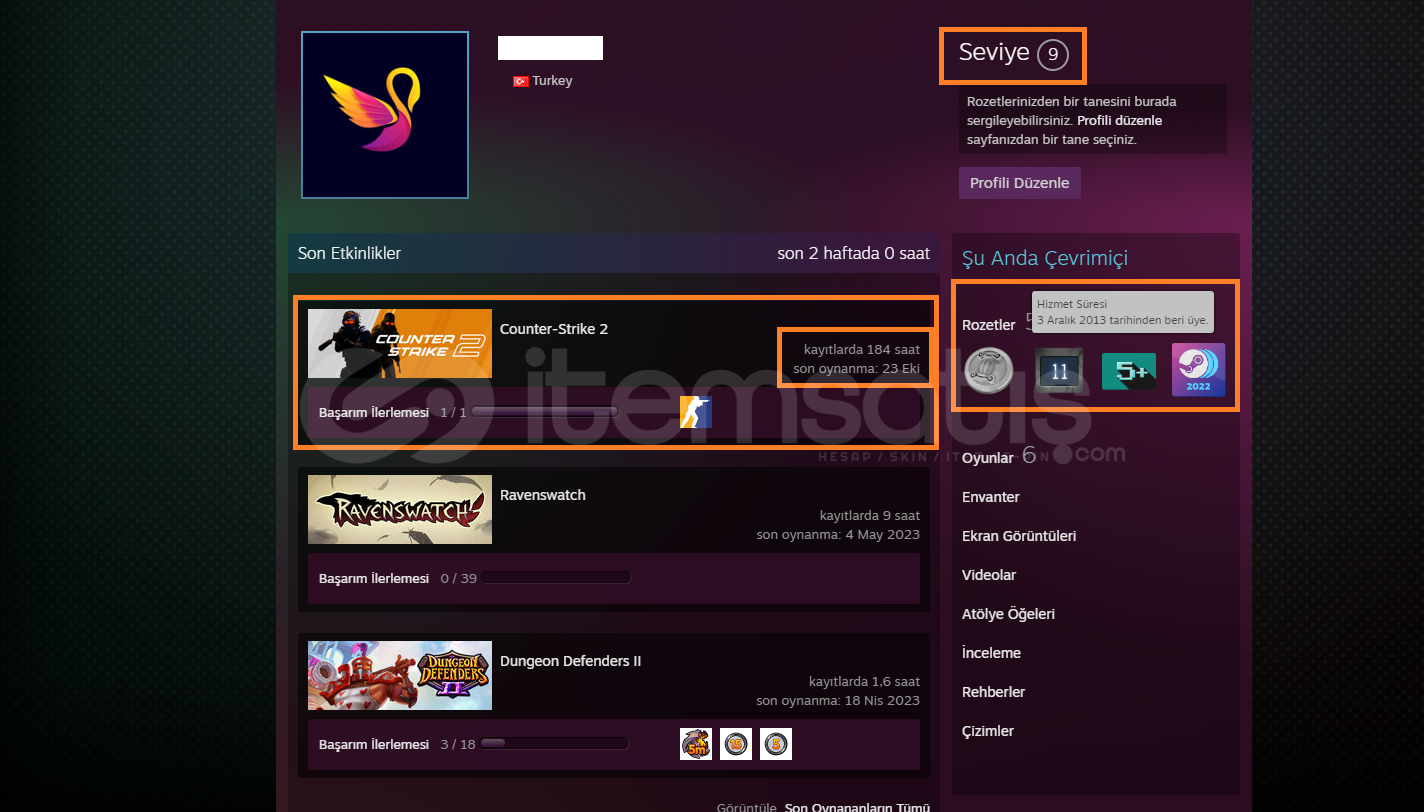 STEAM PROFİL SEVİYESİ : 9 SEVİYE