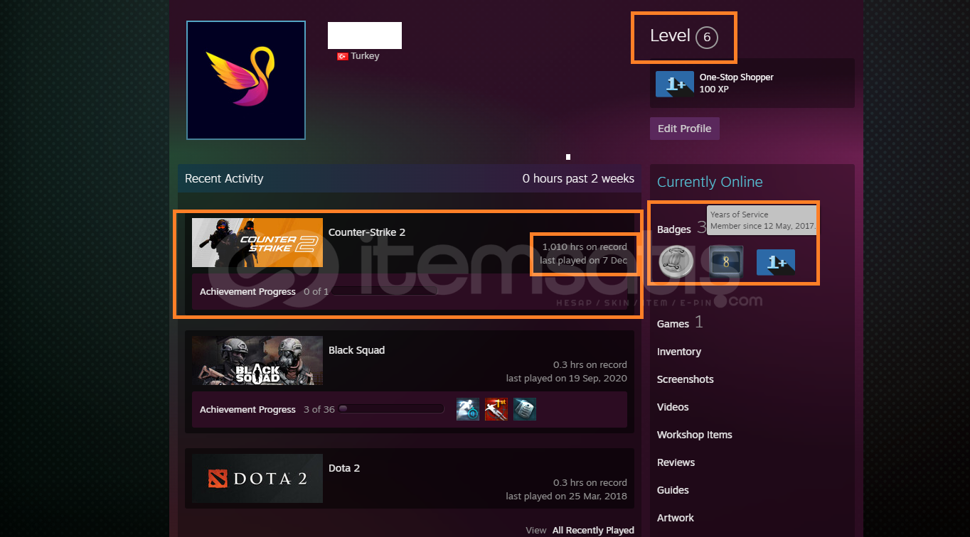MADALYALAR : CS GO ROZETİ+SADAKAT ROZETİ + 5 YIL ROZETİ + 2018+2017: 5 MADALYALI