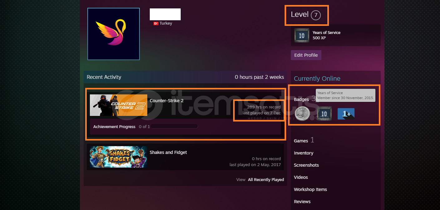 MADALYALAR : CS GO ROZETİ+SADAKAT ROZETİ + 5 YIL ROZETİ+10 YIL ROZETİ + 2017: 5 MADALYALI