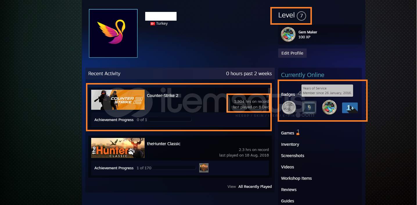 STEAM PROFİL SEVİYESİ : 7 SEVİYE