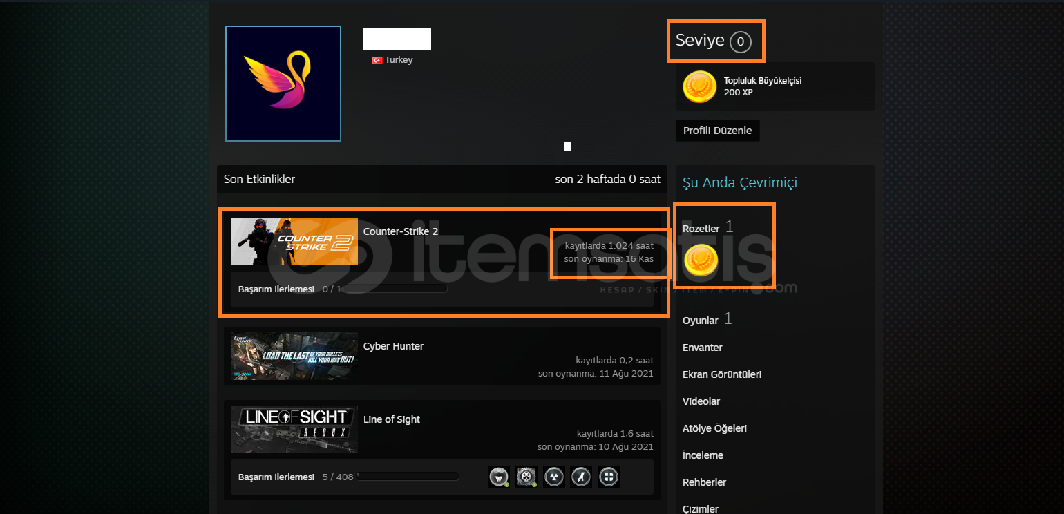 STEAM PROFİL SEVİYESİ : 0 SEVİYE