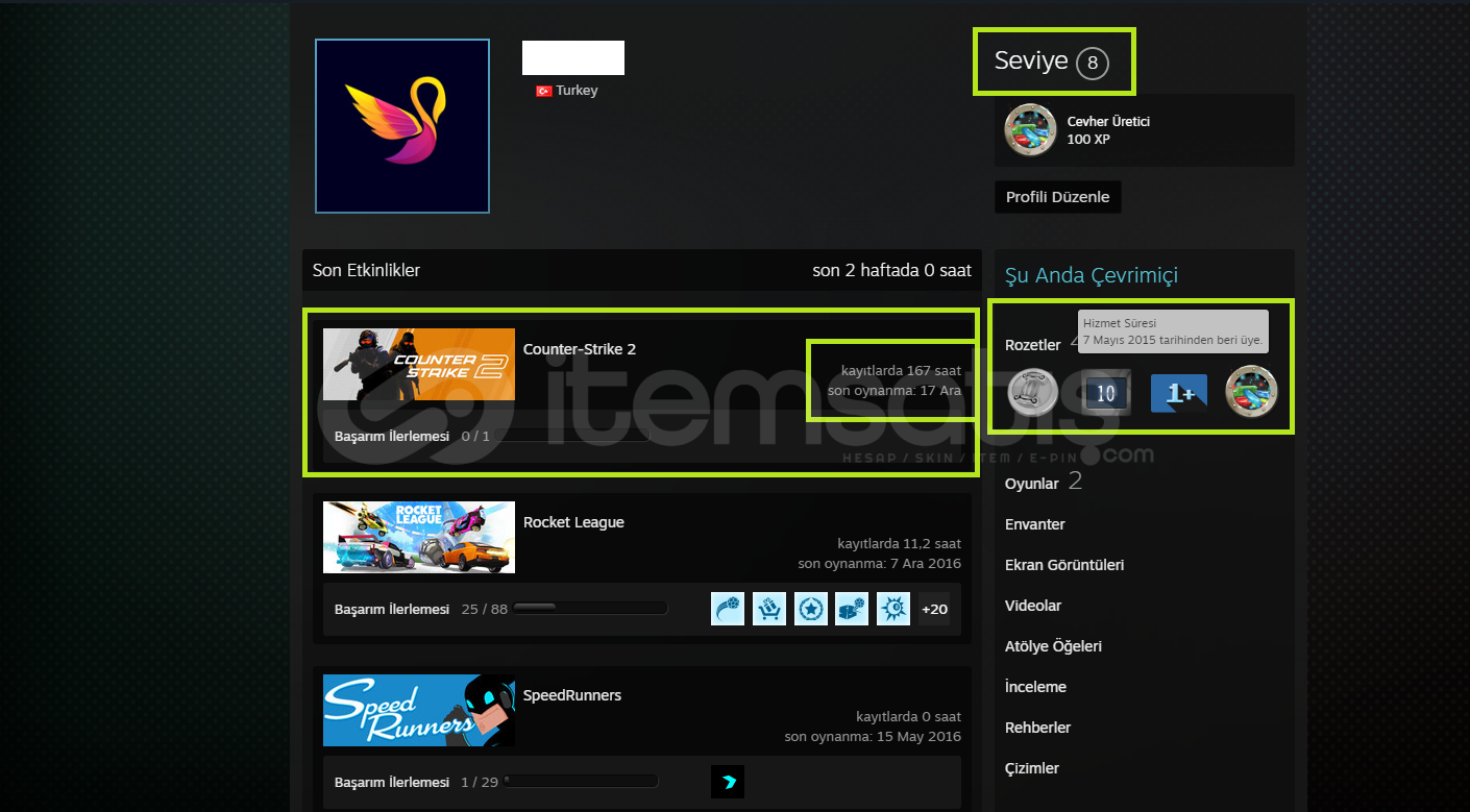 STEAM PROFİL SEVİYESİ : 8 SEVİYE
