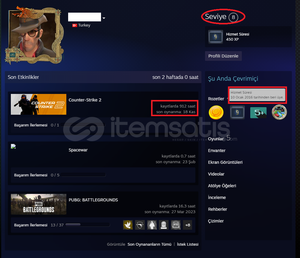 ⏳ Oynama Süresi: 912 Saat